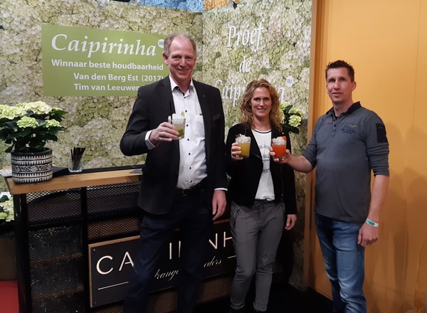Jan ten Brinke and award winner Marjanne van den Berg and Tim van Leeuwen. Source picture: Hydrangea Breeders Association