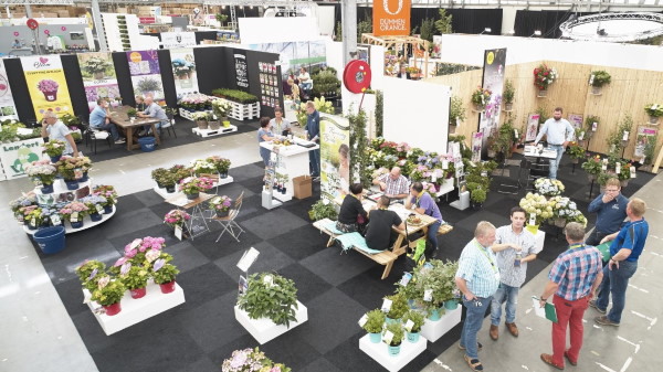Ideally, the grower's square would not have any dividing walls or barriers between the two trade fairs, but the current trade fair venue and divided visitor areas do not allow for this. In that sense, although the event organizers have not achieved one grower's square, they have sought to optimise the exhibition layout within the given framework.