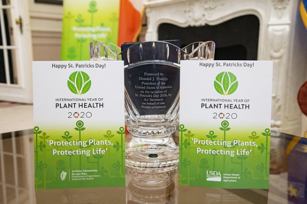 He and I reviewed the plant health—or phytosanitary—certificate that Ireland’s national plant protection organization issued for the shamrock plants. The certificate attests that they meet USDA’s import requirements. Without it, the U.S. Department of Homeland Security’s Customs and Border Protection would not have allowed the plants into our country. This certificate is a powerful assurance that the shamrock plants pose a minimal pest risk. They arrived sealed in clear bags, and their roots were free of soil or any other growing media that could harbor invasive pests. They were ready, and legal, to grace the White House with their beauty and symbolism.