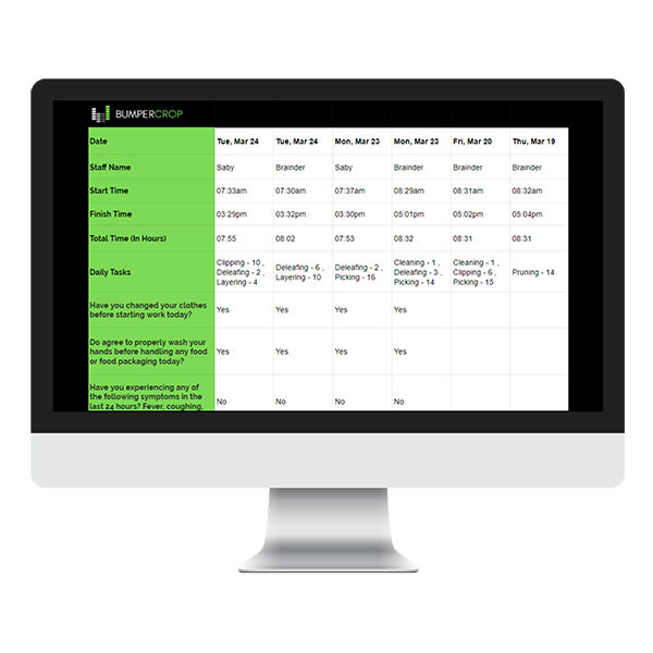 BumperCrop has made a version of the App available for growers to use with their existing phones, tablets or desktop computers without the need for installing the BumperCrop Greenhouse Staff Management System. “We want this to be readily available to as many growers as possible to help stop the spread of the virus. We are aiming to give this for free to as many greenhouse growers as is feasible,” said BumperCrop founder Adam Forbes.