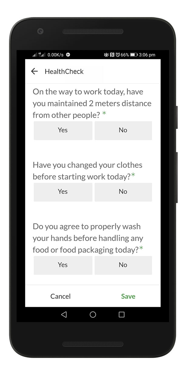 At the start of each day, staff are asked a series of questions. This reminds employees what they need to do to mitigate the risk of spreading COVID-19. Each employee’s responses are automatically tracked and available in a webpage that can be shared to demonstrate compliance.