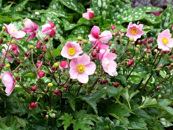 The genetically-dwarf anemone variety has a mounding growth habit and grows the most actively in summer. Anemone Satin Doll Blush is suitable for pots with its pink flowers and green foliage. It is also a pollinator attractor.