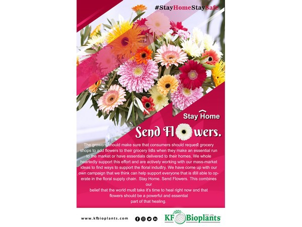 Stay Home. Send Flowers. is a campaign of Indian plant propagator KF Bioplants. "The world needs more flowers in homes and not in dumpsters right now", they say in a press release. "The growers should make sure that consumers should request grocery shops to add flowers to their grocery lists when they make an essential run to the market or have essentials delivered to their homes. We wholeheartedly support this effort and are actively working with our mass-market ideas to find ways to support the floral industry. We have come up with our own campaign that we think can help support everyone that is still able to operate in the floral supply chain. Stay Home. Send Flowers. This combines our belief that the world must take it’s time to heal right now and that flowers should be a powerful and essential part of that healing."
