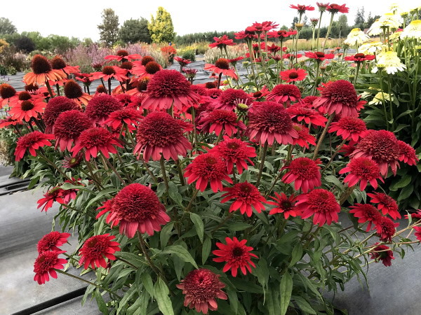 New coneflowers from Terra Nova are Echinacea Dark Shadows Wicked; Echinacea Prima Saffron; Echinacea Sunny Days Lemon; and Echinacea Sunny Days Ruby.