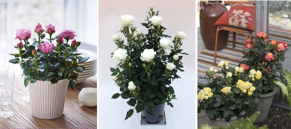 From left to right: Pink Infinity (There are 7 colours in the series), Sweet Home Roses, here Sweet Day ready to plant, and Sweet Summer and Sweet Family planted in big pots in the garden.
