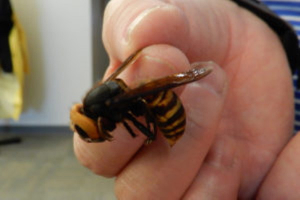 Asian giant hornet, the world's largest species of hornet, was found late last year in northwest Washington. WSU Extension scientists are partnering with state agencies, beekeepers, and citizens to identify and report the invasive insect (Photo courtesy WSDA).