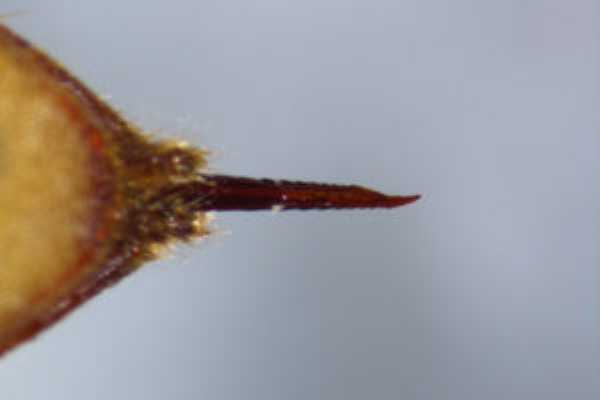 A close-up of an Asian giant hornet’s stinger. The hornet can sting through most beekeeper suits, can deliver nearly seven times the amount of venom as a honey bee, and can sting multiple times (Photo courtesy WSDA).