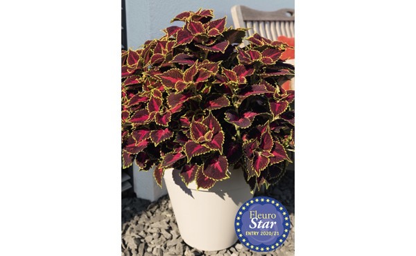 "Make way for some freaky foliage! Solenostemon Main Street Hollywood Boulevard adds a hint of urban jungle flair to your patio or balcony. The burgundy leaves with magenta pattern in the centre and bright green outer rim absolutely catch the eye. This Coleus can make a true statement as a stand-alone item but is also the perfect complement for flowering ornamentals in mixed containers. Main Street Hollywood Boulevard is very easy to handle, available all-year round and suitable for both indoor and outdoor use.This newcomer will convince retail with excellent shelf life whereas consumers will be impressed with its excellent garden performance. Main Street Hollywood Boulevard, the leafy star for your green space."