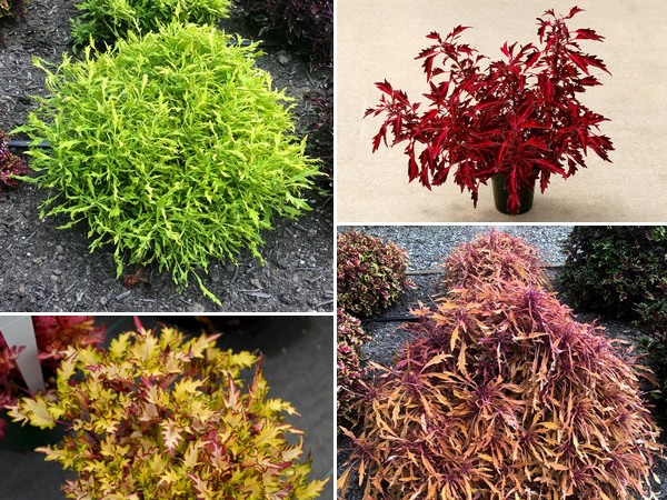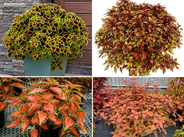 Clockwise: Coleus NOVA 'Roly-Poly', Coleus TERRA NOVA 'Harvest Time', Coleus TERRA NOVA 'Pumpkin Spiced', and Coleus TERRA NOVA 'Peach Julep'.