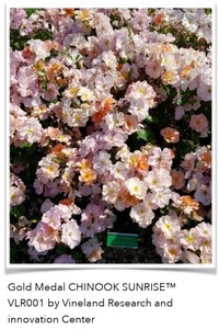 Gold Medal for Group flowers with OSCAR PETERSON™ AAC333 and CHINOOK SUNRISE™ VLR001 from Vineland Research and Innovation Center, Canada and for Miniature with ZEPETI® Meibenbino from Meilland International.