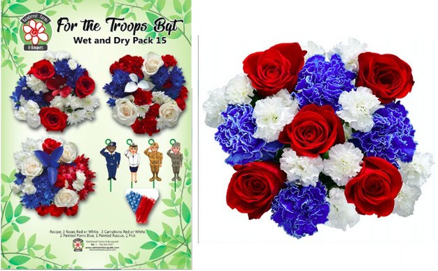 Rainforest Farms and Bouquets ships all kinds of bouquets, including many Patriotic themed bouquets to the US supermarkets for many years now. The company has been supplying these kinds of bouquets since the establishment of the farm 18 years ago and they are very popular during the patriotic holidays such as Memorial Day, 4th of July, Veteran’s Day and so on, explains Rich. “We believe that flowers are a great way to honor our nation and that they give consumers new ideas to make their Patriotic celebrations a hit.” They use picks to highlight the meaning of the red, white and blue designs and in this case honor American soldiers. “We believe that themed bouquets give our floral departments an extra point of contact that draw in shoppers to check out the blooms.”
