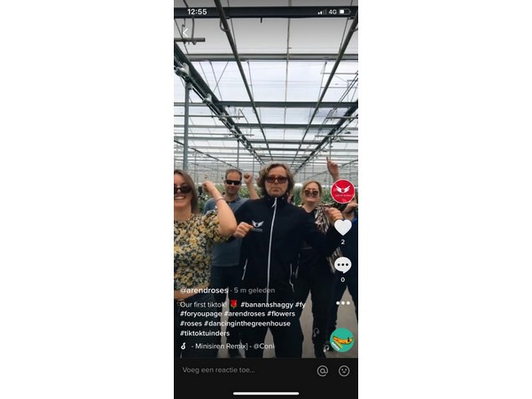 With this video, Dutch rose grower Arend Roses made their debut on TikTok. "We are already very active on Instagram and Facebook, so we had to get on TikTok as well, a platform that is growing rapidly", says Annemieke van Loon, Manager Marketing and Communication at Arend Roses. And as you can see, the team had a lot of fun, not only during, also before and after the making of video.
