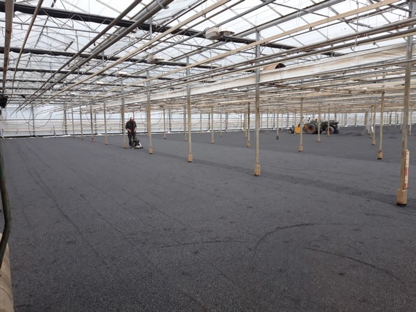 As far as the floor is concerned, just a call to Houdijk den Boer was sufficient. They had already come by more than two years ago to provide half the nursery with a beautiful basalt floor. This type of floor has good drainage and guarantees that plants are not standing in water. Since last month, the rest of the nursery, in its entirety more than one and a half hectares, has also been fitted with this type of cultivation floor.