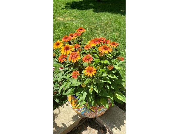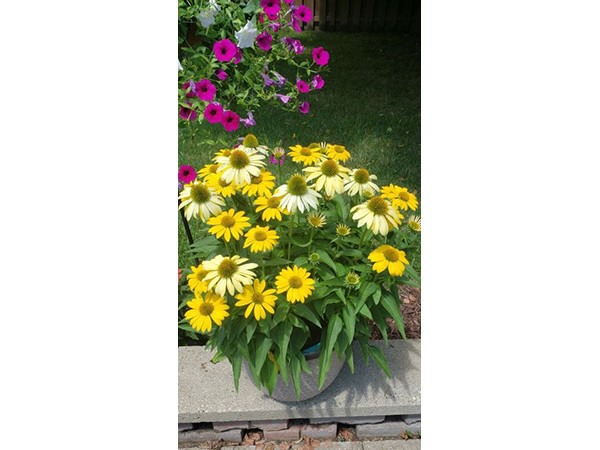 Love this in a bowl on the picnic table. It won’t get much taller than this. The strong yellow on this selection does not fade. Look for more colors to come in this NEW compact series of Echinacea.