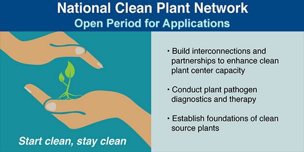 The U.S. Department of Agriculture’s (USDA) Animal and Plant Health Inspection Service (APHIS) is inviting stakeholders to submit project suggestions for fiscal year (FY) 2021 Plant Protection Act Section 7721 (PPA 7721) and National Clean Plant Network (NCPN) funding. In total, APHIS will be making approximately $75 million available in plant protection funding with at least $5 million going to the NCPN.