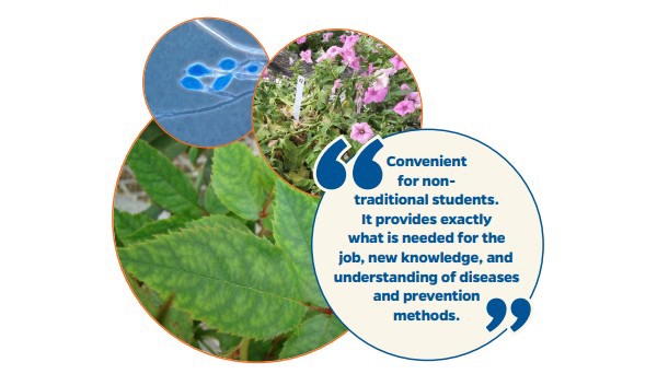 The course is taught by Dr. Carrie Harmon, Director of the UF/IFAS Plant Diagnostic Center in Gainesville, FL and Executive Director of the National Plant Diagnostic Network. Growers in the course have described her as a “clear, concise and informative instructor” who help them “feel more capable identifying disease problems, and less intimidated by the disease books on the shelf.”