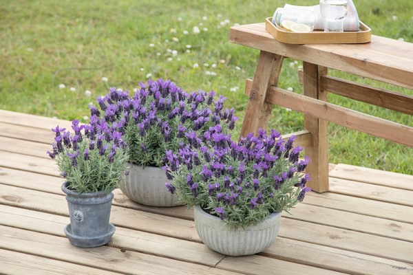 So, when selecting, they first paid attention to the blooming period of the lavendula stoechas, which according to Graff is one of the main characteristics a consumer is looking for. "A long blooming period adds value and the one variety was reblooming again and again after about three weeks. Furthermore, this habit makes it very interesting for combinations, eventually with mandevilla, hibiscus or other major patio plants, in turn adapting well to the current mix and match trend.