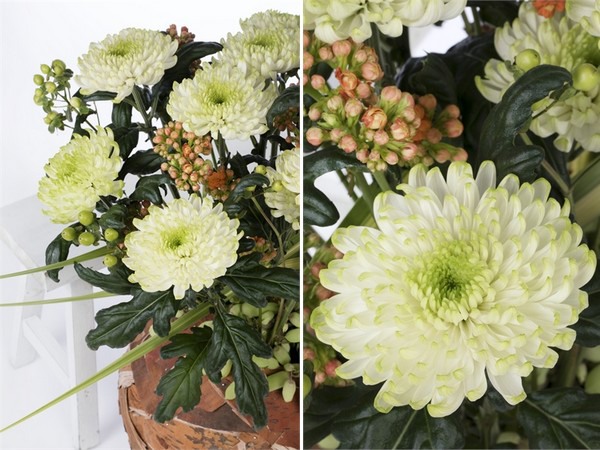 Disbudded chrysanthemum Rossano already has many colour variations. This well-known family of strong flowers will now be extended with a new colour: Rossano Lime. A white decorative flower with green edges on the petals, similar to pink Rossano Charlotte and orange Rossano Elizabeth.