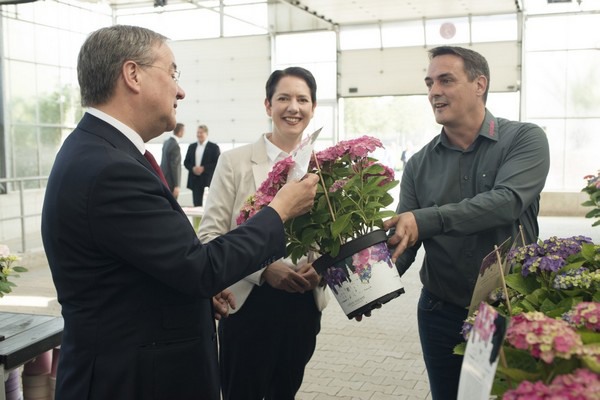 Only one question there was that Andreas Pellens did not give an answer for to Armin Laschet: How exactly the trick about the award-winning many-coloured hydrangea mixes called “Colour Club” worked. “That is a business secret”, Pellens said and earned an open laugh from Laschet for it before he at last stepped back into his limousine and drove off to Isselburg to a two-day cabinet meeting.