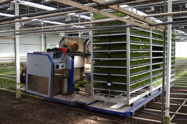 Bouvardia cuttings. Adjusting the cuttings robot in such a way that it always grabs the cutting in just the right way is not as easy as it seems, but things are improving.