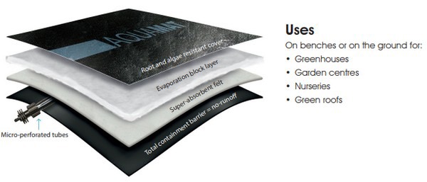 Resource use, labour and energy costs are hot topics nowadays. Growers are more often looking for solutions to reduce the amounts of water and labour necessary for watering and to reduce the energy and nutrients requirements for the growth of plants. For more than 20 years Soleno Textiles, a division of Soleno Inc., one of the leading Canadian manufacturers of polyethylene pipes, is working on finding solutions to these challenges. With their Aquamatsystem, a range of horticultural irrigation systems, they aim to meet the growers' needs. The first products they put on the market were the Aquamat and Aquathermat, which are still their bestsellers.