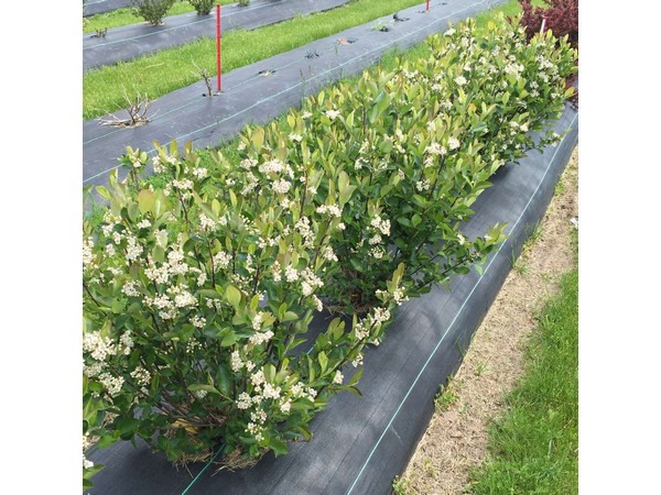 Aronia melanocarpa Low Scape Hedger®. 'Form follows function with Low Scape Hedger® aronia, a narrow columnar selection that's perfect for creating hedges or mass planting. Lower maintenance and faster to produce than 'Viking.' White flowers in spring appear among dark glossy green foliage which turns to vivid shades of yellow, orange, and red in autumn. Developed by Dr. Mark Brand and Dr. Bryan Connolly at the University of Connecticut. Native.' Click here for more information.