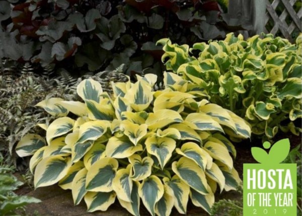 ‘Autumn Frost’ is a sport of the 2010 AHGA Hosta of the Year, ‘First Frost’, which in turn is a sport of the champion of blue hostas, ‘Halcyon’. It is a showier version of ‘First Frost’, displaying extra wide margins. The leaves emerge frosty blue with a bright yellow margin that lightens to creamy white during the summer. It forms a medium sized mound topped with light lavender flowers in mid to late summer.' Click here for more information. Click here for more information.