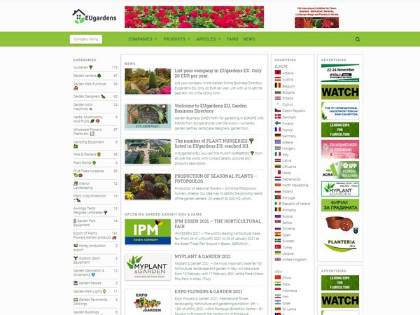 "We wanted everybody in Europe, when looking for some garden product to find it in one place. So we started to gather database,” says Stefan Rusenov, one of the creators of eugardens.eu, an European Garden Business Directory. This online directory for consumers was launched two years ago and is presenting companies that are connected to the garden business, like nurseries, garden centres, landscape designers, garden tools producers, garden furniture, et and so on as well as popular garden fairs/exhibitions and the most famous gardens and parks in Europe. Currently, they have 417 companies in their database and 214,000 registered users and both number are – particularly during the pandemic – rising every day.