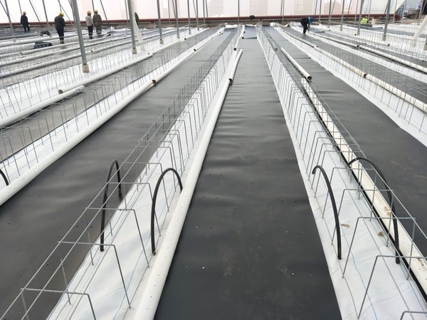 "After investigating all conditions and discussing all needs from our client, our engineers decided what greenhouse they would design. It turned out to become a Gothic structure with all systems, like double roof vents, double screen (shading and thermal), hot water heating system, substrate gutters, and so on. It has is becoming a high-tech greenhouse." At the moment, the first 2.5 ha of the 16ha greenhouse is finished and planted and the other hectares are currently under construction. "The structures are already built, and teams are working hard on finishing installation of the inside systems."