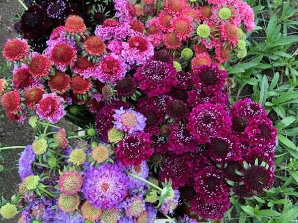 The ‘Scoop’ series, marketed by Danziger, includes a wide range of vibrant colours, primarily shades of pink, lavender, red and purple as well as pure white. They all have very similar characteristics in terms of plant growth and the same ‘pincushion’ flower form. The ‘Maestro’ series, marketed by HilverdaFlorist, have different characteristics, with some having ‘pincushion’ flowers while others are more akin to the traditional perennial Scabious, but with a similar range of flower colours.