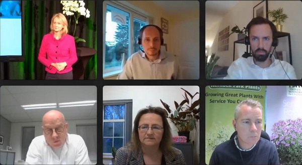 The webinar organized by World Horti Center AIPH and Floriculture International hosted several speakers: Sally Cullimore of Horticultural Trades Association (HTA) from the United Kingdom, Eline van den Berg of Royal FloraHolland, Stefan Koopman of Rabobank, Bruce Harnett of Kernock Park Plants from Cornwall, UK, and Henk Westerhof of Anthos. The webinar was chaired by Tim Briercliffe, Secretary-General of AIPH.