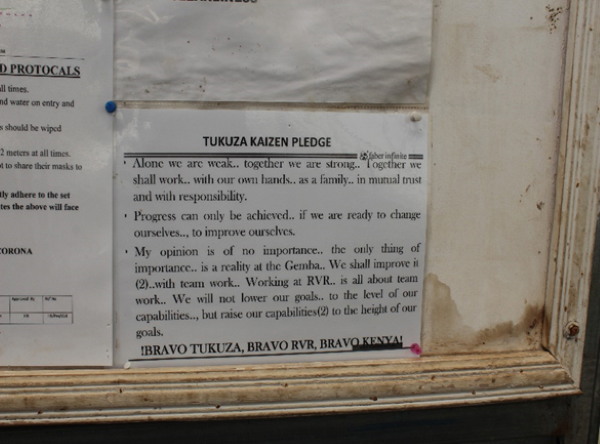 Guided by Kaizen’s principles of continuous improvement, Rift valley roses have its own tailored Kaizen philosophy. Rift valley’s philosophy dubbed TUKUZA (Tunaweza Kuboresha Zaidi) has been exhaustively streamlined in all processes within the farm. This philosophy has quality as one of its main objectives. Stuart the farm owner mentioned that “We have trained our employees and everyone around the farm towards a quality-minded approach, this culture has enabled us over the years to produce and deliver quality roses”.