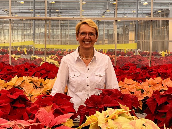 It is December and traditionally this is the time for Poinsettias. “It is not surprising that the Poinsettia is associated with Christmas: 90% of the Poinsettias you see in the stores are red. The other 10% are white, pink or “glitter”. It takes about 6 years to get a new Poinsettia on the market.” Ans works with her team on this interesting process.