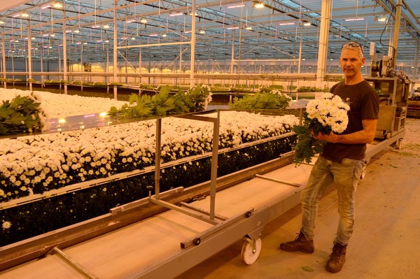 A modern chrysanthemum greenhouse is not complete without a flower tunnel. It literally runs like an aorta through the company and is the pivot on which the entire internal logistics revolves. In the new greenhouse it was built by Van Holstein Betonwerken, a project that the company does about once a year, on average, Ron van Holstein says. "Challenging about this project was that the grower also wanted the steam pipe underground. You used to see that more often, but in recent years it has become less common. As a result, the construction is a lot wider than usual, about four decimetres. In addition, the tunnel had to end up in an existing barn, which meant that it had to be feared out".