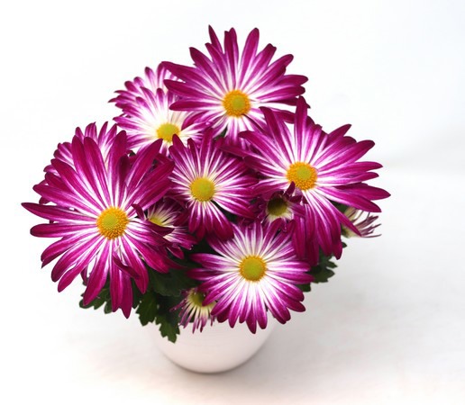 Bicolored varieties are becoming more and more important for pot chrysanthemums. At Brandkamp, these are the Flashlight Mums. They get reinforcement from the purple/white blooming Capri. The large flowers shine enormously and the habit is perfect.