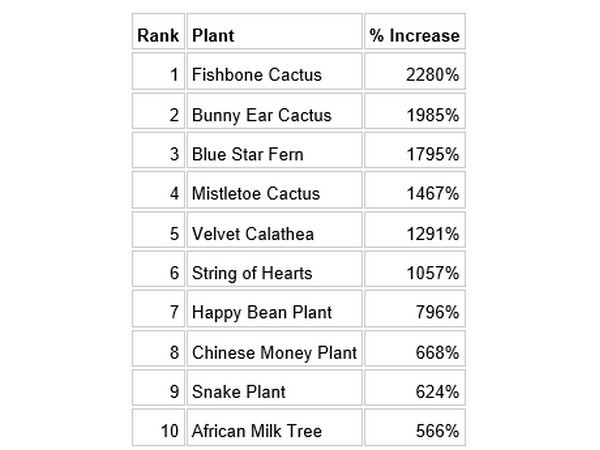 "These houseplants have all seen huge increases in popularity since 2010, with the Fishbone Cactus jumping by more than 2,280%. So while you may not have seen many of these plants in homes ten years ago, you might just spot them far more often in 2020."