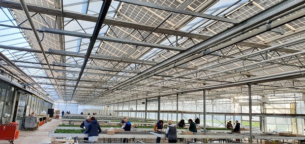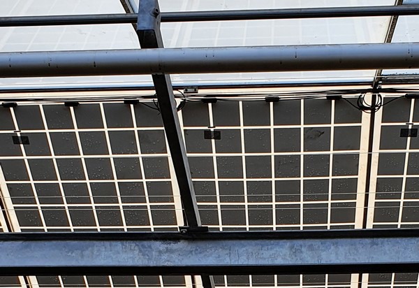 A combination of the desire to be sustainable and available subsidies enabled Kregting to make this investment. However, the reason why these specific solar panels were used, integrated into glass, is because it is a relatively simple solution. The existing glass is removed and the custom panels are put in the same slots. Besides, it looks very nice. Furthermore, the grower is the first to use this solution. Kregting: "It is already used for 1-meter glass, but this is new for 112.5 cm."