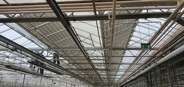 A combination of the desire to be sustainable and available subsidies enabled Kregting to make this investment. However, the reason why these specific solar panels were used, integrated into glass, is because it is a relatively simple solution. The existing glass is removed and the custom panels are put in the same slots. Besides, it looks very nice. Furthermore, the grower is the first to use this solution. Kregting: "It is already used for 1-meter glass, but this is new for 112.5 cm."