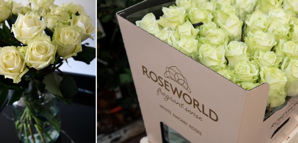 White Naomi! is a beloved variety and has many strong characteristics like fragrance, open flowering, and a long vase life. "In the ‘Fragrant Sense’ line, the emphasis is on the fragrance of the rose and is characterized by the special selection of thick stems with a large flower. The new packaging matches the product and has luxurious tones.