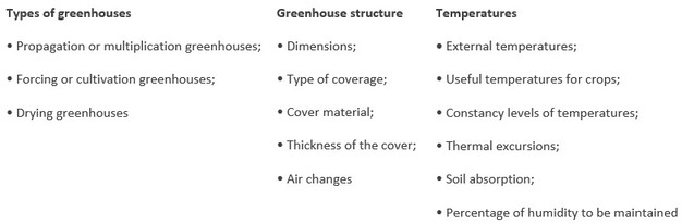 "Heating the greenhouse considering only the structure and the temperature level to be maintained inside, without considering the temperatures useful for the reference crops could be harmful to production. Each plant has different vegetative temperatures, these differ in: temperatures necessary to reach optimal conditions and limit temperatures."