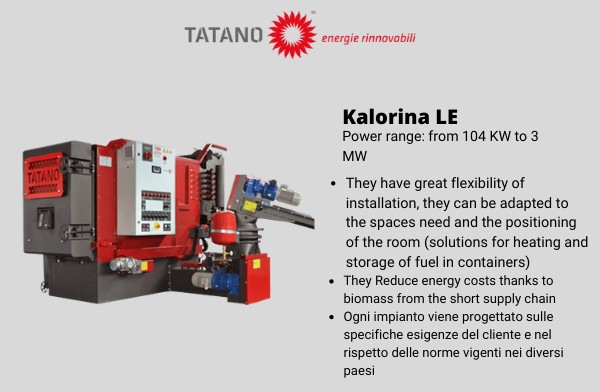 The boilers can be installed both inside dedicated technical compartments or inside containerized solutions. "The use of biomass boilers as well as being an economic solution is an optimal solution to respect the environment. The boilers are characterized by a low particulate content in the exhaust gases thanks to the integrated multi-cyclone filter of the smoke extractor. This allows to maintain the correct depression inside the combustion chamber. Furthermore, this process is made more effective thanks to the double combustion control through the temperature probes (water/smokes) in combination with the residual oxygen content regulation system with minimal emissions even at partial load."