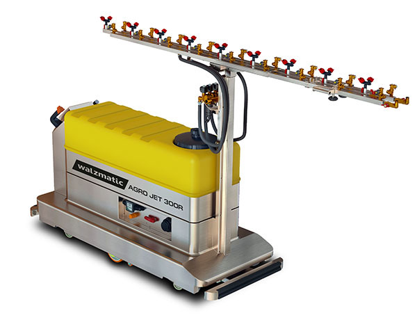 "Walzmatic Agro Jet 300R is made entirely of food grade AISI 304 stainless steel, which provides excellent protection against chemicals and eliminates corrosion for a lifetime," they show. "The operation has never been so easy, with just one joystick. There's also a large waterproof touch panel (9"). The sprayer can easily move along the concrete path, and the simple setting of the spraying and travel parameters can only delight."
