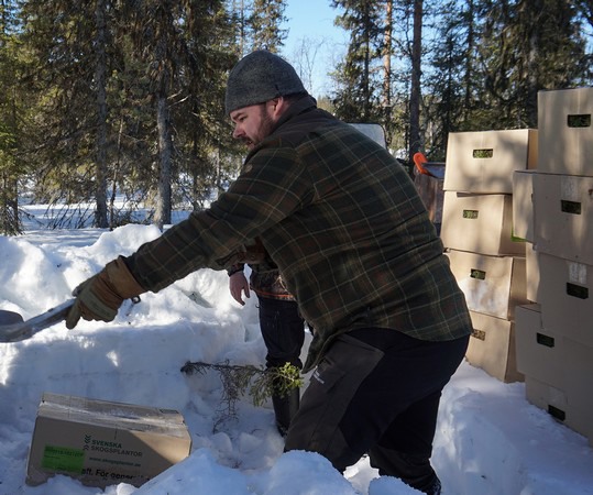 “The snowmobile plants aren’t going to be planted just yet but thanks to the fact that we are delivering the plants frozen and in boxes, we can make the most of the snow. They might be in marshlands or places far from the nearest road, so with the help of the snowmobiles, the plants can be transported to their planting site without heavy vehicles causing damage to the ground and without planters having to carry them long distances which is good in terms of both the natural environment and the working environment. Once in place, the plants are buried in the snow and because they’re protected by their boxes, they’ll still be in good condition come May/June time. The company is using digital GPS marking for the snow caves so that planters can find the plants once it’s time to plant them,” adds Tomas Jansson.