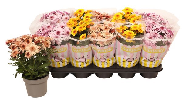 From next week, the Chrysanthemum 'Suntaste' 12 cm will be available at SV.CO. This new flavour from SV.CO comes in four colors and has a small anemone-shaped flower.