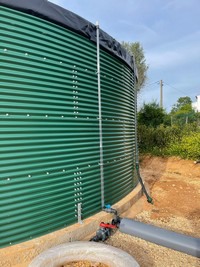 We're not calling anybody ugly yet water tanks might not be the most beautiful devices ever installed in horticulture. Well, think again. A grower in Portugal ordered a water tank in pinewood green. "The green colour of the metal panels is caused by a powder coating, preventing against corrosion in demanding environments," says Arjen van Dijk with NPI (Nederlandse Plastic Industrie), supplier of the water tank. "We advise to apply this additional coating at least to the bottom rings of the tank (available per ring). This client however has ordered a fully coated tank to let it blend in the landscape."