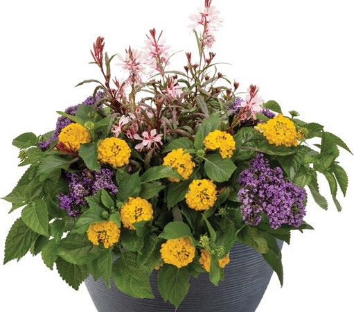 Pollinator’s Paradise, like the rest of the Garden Party program from Dümmen Orange, works well when planting all the components as rooted liners together, ensuring an even finish of bloom times and habits across all varieties. The perennials selected for the combinations are first-year flowering, so they will match up perfectly in the greenhouse with the annuals. And varieties have been selected for continuous flower power, making them successful for consumers all summer long. The combinations can be treated as annuals if used in planters or have the one mainstay perennial return next year if planted in the ground.