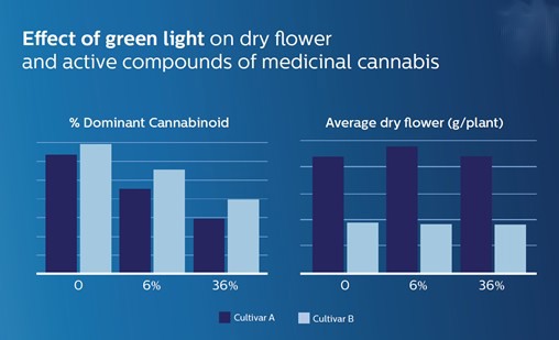 Figure 3 Higher active compounds of medicinal cannabis with lower percentages of green light.