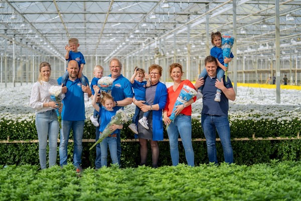 The grower is also pleased with the new look and feel. "Displaying a warm family feeling with our brand colors red and bright blue is not that easy," says grower Rene de Jongh. "We see everything that is important to us incorporated in the new concept: the appearance of our beautiful chrysanthemums, sustainability of our cultivation, Dutch origins, a family feeling and love for our kids."