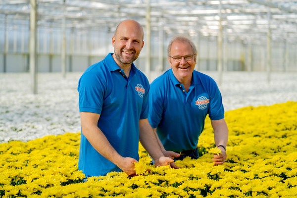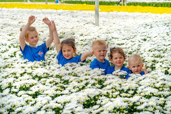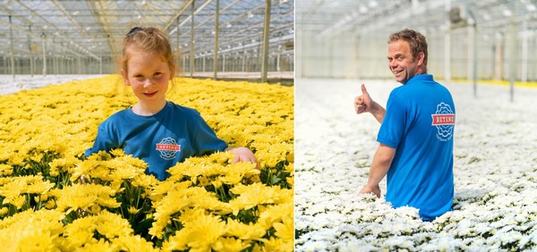 Retine grows four varieties of cut Chrysanthemums - Kalimba, Euro, Pina Colada Yellow and Pina Colada White - at two different locations in Tuil. More than 16 million stems annually, the cultivation area covers 5.8 ha. The nursery was founded in 1979 by Dineke and Jan Willem de Jongh. After a few years of carnations, the step was made to chrysanthemums. Today, multiple generations work side by side: next to their parents, son Rene and daughter Martine - hence RE-TINE - lead the company, and, as can be seen in the photos, the next generation is eagerly awaiting.