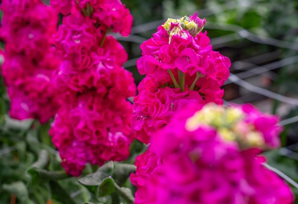 Magenta stock flowers bloom in MSU's cut flower greenhouses. Credit: Derrick L. Turner